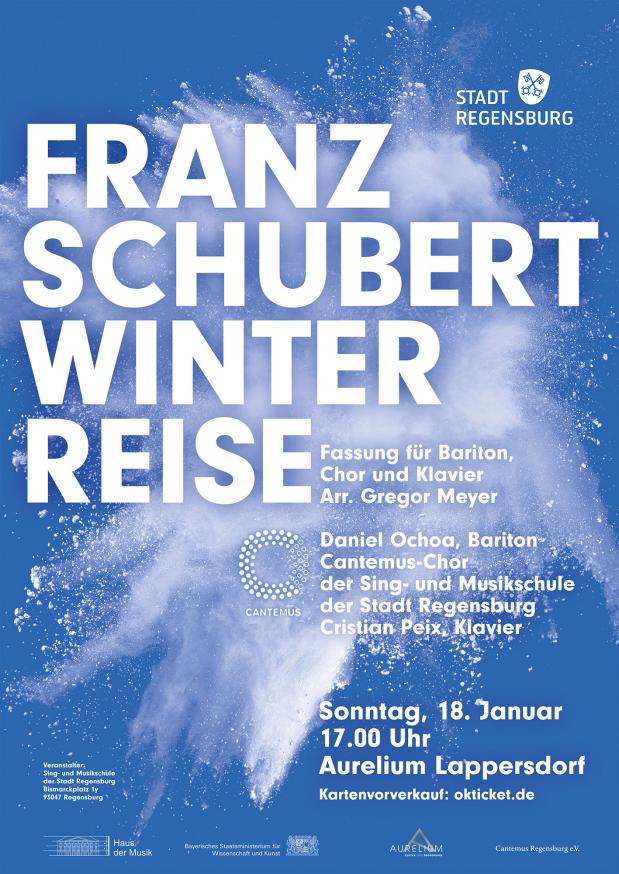 Einer der bekanntesten Liederzyklen des 19. Jahrhunderts, die Winterreise, 1827 von Franz Schubert komponiert und zu den Höhepunkten des romantischen Kunstliedschaffens gezählt, stellt für seine Interpreten eine große Herausforde- rung dar. Die von Gregor Meyer, Leiter des Gewandhaus- chors und des Vocalconsorts Leipzig, erarbeitete Fassung für Bariton solo, gemischten Chor und Klavier ermöglicht einem erweiterten Musikerkreis die Aufführung. Melodie so- wie Text unverändert belassend stellt Meyer dem einsamen Wanderer eine stilistisch vielfältige sowie atmosphärisch dichte Chorbegleitung an die Seite.